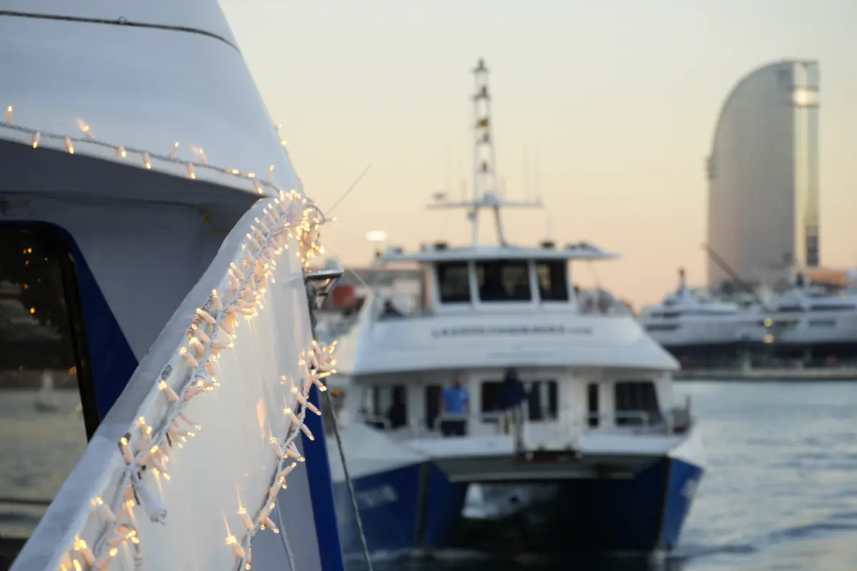 A bordo disfrutarás de villancicos en directo, cantantes y traviesos duendes de Navidad que encantarán a pequeños y mayores. También contemplarás las luces del puerto y la Feria de Barcelona en plena ambientación navideña.